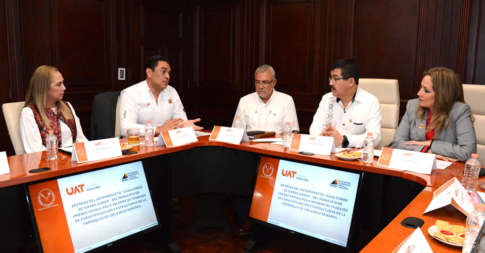 La presentación y entrega de este planteamiento universitario se llevó a cabo en la reunión que presidió el rector de la UAT, MVZ Dámaso Anaya Alvarado, con el Ing. Pedro Cepeda Anaya, secretario de Obras Públicas del Gobierno de Tamaulipas, y el Ing. Luis Enrique Salazar Sánchez, presidente municipal de Jiménez.