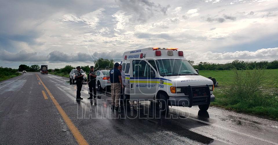 Jiménez, Tamaulipas. - Ante la lluvia registrada esta tarde sobre la carretera Victoria-Matamoros pero dentro de la jurisdicción de Jiménez, se registró una volcadura en el km. 106 a la altura del Tinieblo que dejó una persona lesionada.