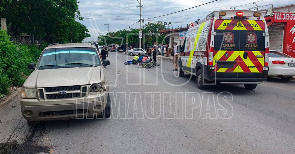 Ciudad Victoria, Tamaulipas. - Un motociclista resultó con fractura en su pierna derecha al impactarse contra una camioneta en la carretera Interejidal y calle Francisco de la Fuente de la colonia La Presita.