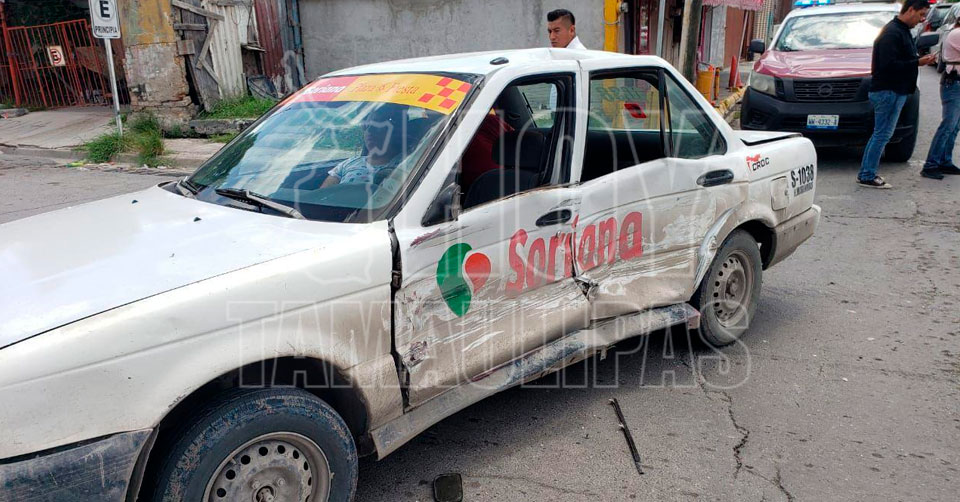 Matamoros, Tamaulipas. - Un sexagenario ocasionó un choque en la zona centro de Matamoros al no detenerse en un alto e impactar con su camioneta a un taxi, lesionando a una mujer, que fue hospitalizada.