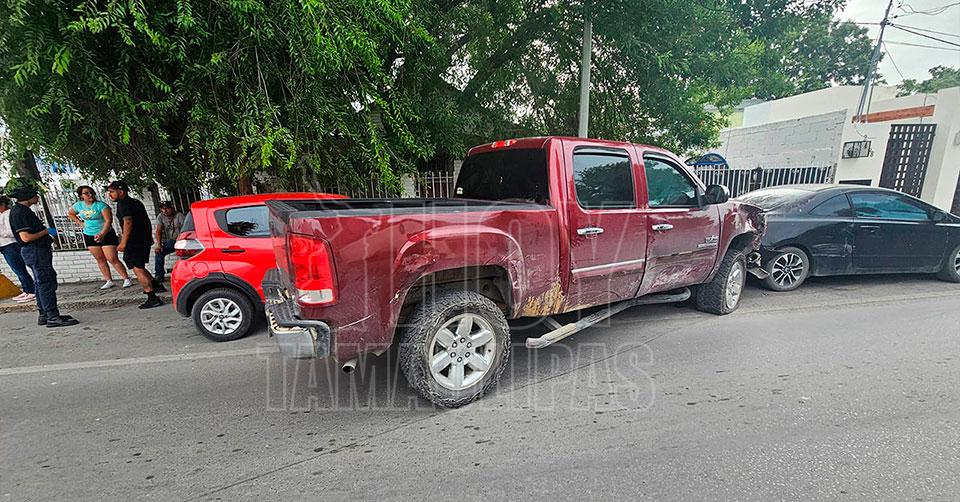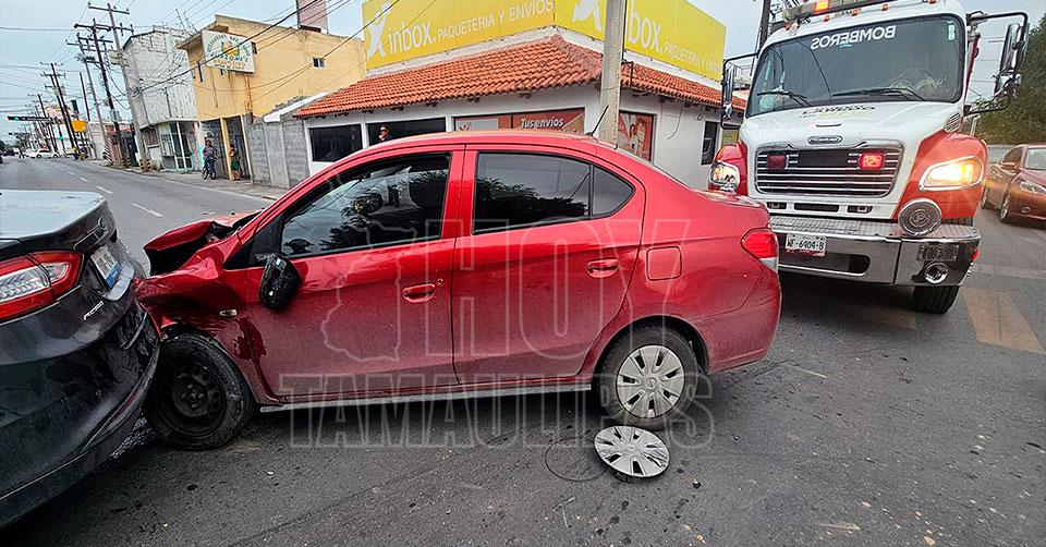 Nuevo Laredo, Tamaulipas.— Dos mujeres resultaron lesionadas y cinco vehículos sufrieron daños en un choque múltiple ocurrido en el crucero de la avenida Juárez y Venustiano Carranza, en la colonia Juárez de Nuevo Laredo.