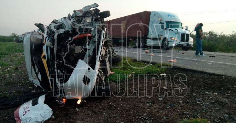 Ciudad Victoria, Tamaulipas.- Una ambulancia del ISSSTE chocó esta madrugada con un tráiler, dejando un saldo rojo de una persona sin vida y dos más lesionadas, en el kilómetro 7 de la carretera Zaragoza-Victoria.