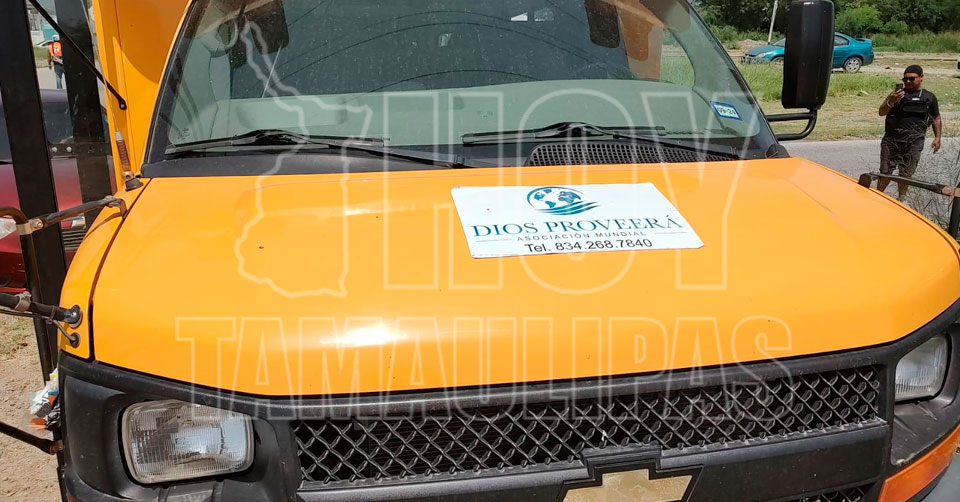 El accidente ocurrió cuando el chofer del camión propiedad de la iglesia circulaba por la calle 27 y al incorporarse al Eje Vial se impactó con el automóvil Chevrolet Aveo.