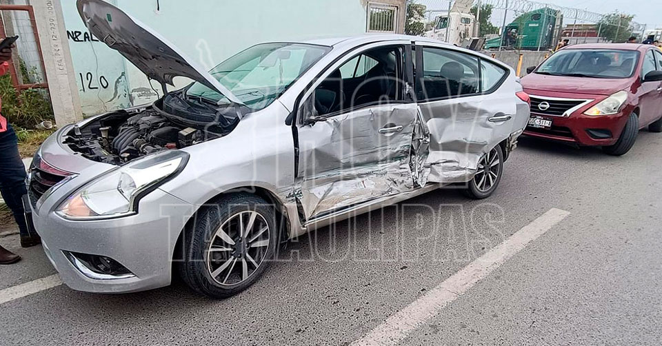 Nuevo Laredo, Tamaulipas.— Un aparatoso accidente se registró en el ejido El Progreso, al extremo poniente de Nuevo Laredo, luego de que una conductora no respetó la señal de alto.