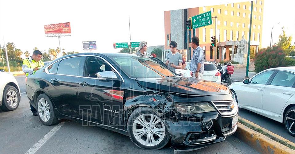 Chocan tres vehículos en Nuevo Laredo por conductor que se pasó el alto