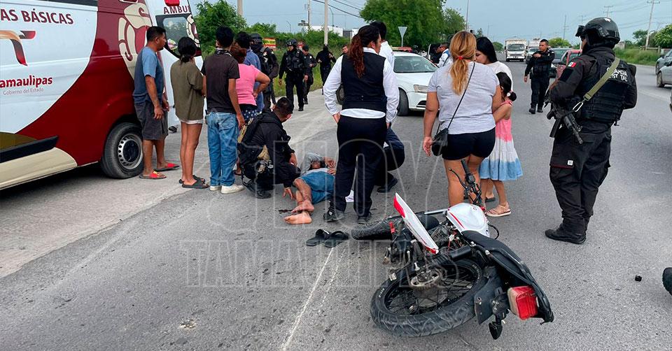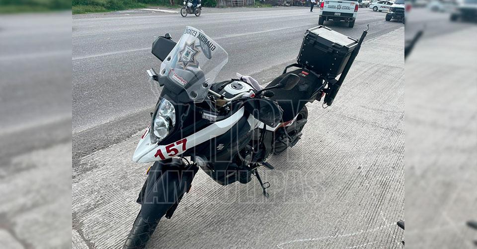 Guardia estatal termina lesionado tras chocar con motociclista en Victoria