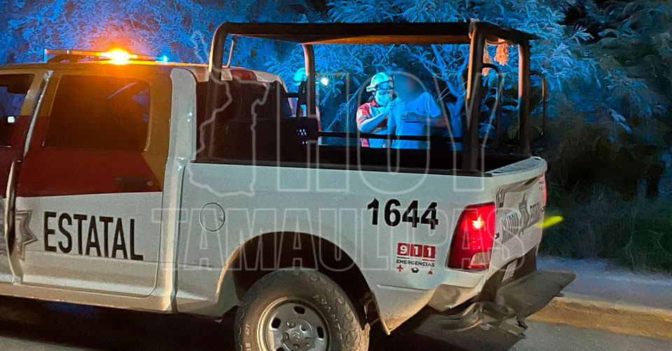 Ciudad Victoria, Tamaulipas. - Dos personas resultaron lesionadas, entre ellos un elemento de la Guarida Estatal tras ser impactada la patrulla por una camioneta Pick-Up en la carretera Interejidal, frente al Complejo de Seguridad.