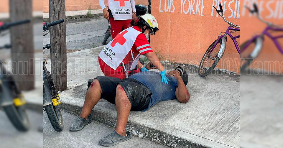 El accidente se registró en el 18 Democracia zona centro de la capital de Tamaulipas, hasta donde arribaron socorristas de la Cruz Roja para auxiliarlo.