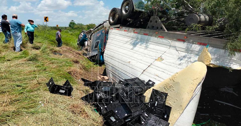 San Fernando, Tamaulipas. – El conductor de un tráiler se salió de la cinta asfáltica cuando se desplazaba en el kilómetro 10 del Libramiento de San Fernando, percance que terminó en pérdida total de la unidad y el chofer lesionado.
