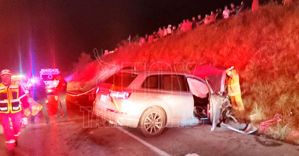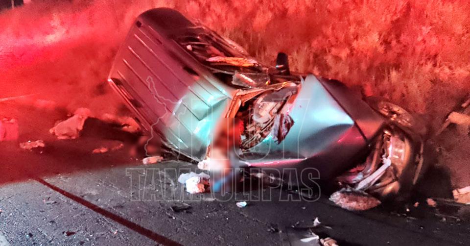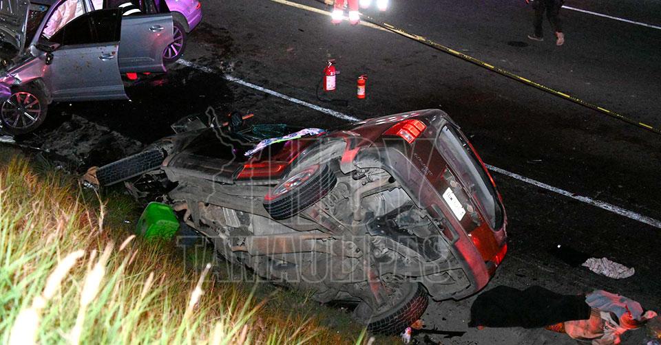 Hidalgo, Tamaulipas. - Cinco personas muertas entre ellas un menor, además de tres heridos, dejó un choque frontal entre dos camionetas esta tarde noche en el kilómetro 43 de la carretera Victoria-Monterrey.