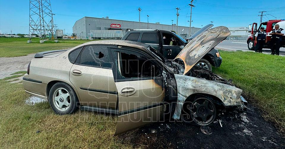 Matamoros, Tamaulipas. - Dos vehículos que se encontraban estacionados en el Parque Finsa Oriente en Matamoros, propiedad de dos trabajadores, se incendiaron y eso originó la movilización de los bomberos.