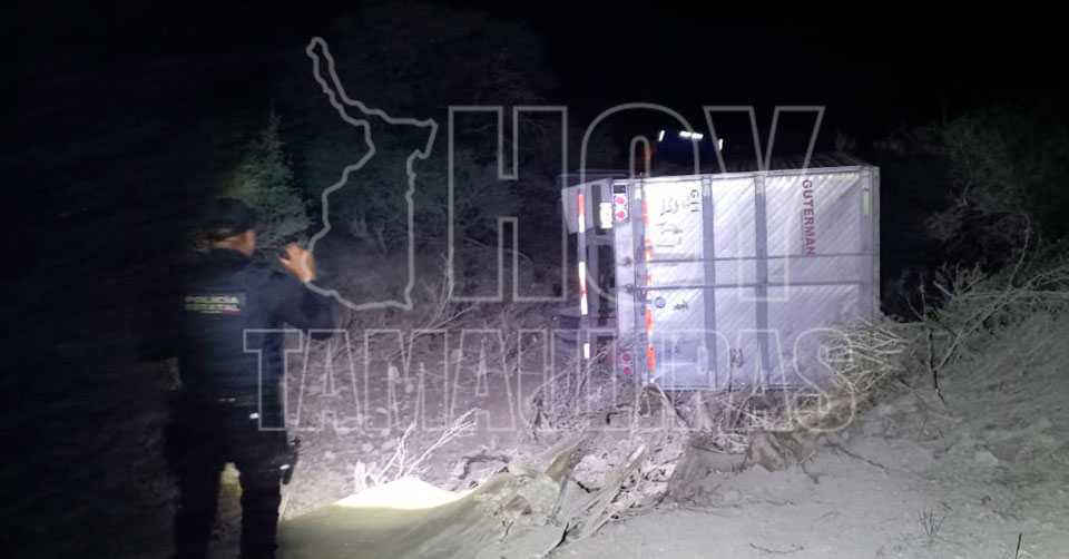 Tula, Tamaulipas.- Un tráiler volcó esta madrugada debido a una falla mecánica y su chófer resultó con lesiones menores, en el kilómetro 30 de la carretera Tula-San Luis Potosí.