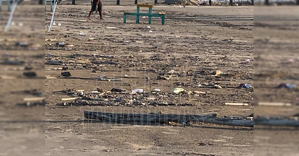 Como si hubiera pasado un huracán o tormenta, es lo que se puede observar como parte de los escombros que arroja el mar.
