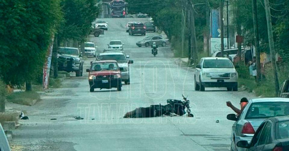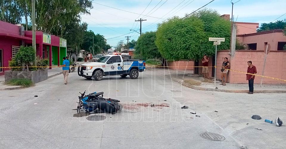 San Fernando, Tamaulipas. - La falta de precaución y el exceso de velocidad fueron el factor para que un motociclista saliera mal herido en la colonia Bella Vista Sur al chocar con una camioneta.
