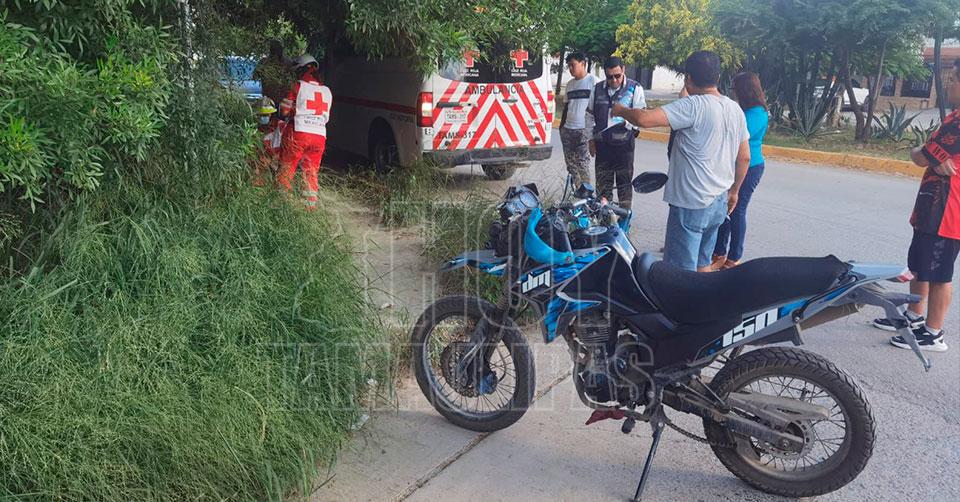 Socorristas de la Cruz Roja le dieron los primeros auxilios, ya que resultó con heridas en las extremidades y por fortuna portaba el casco de seguridad.