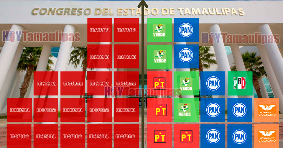 Ciudad Victoria, Tamaulipas. - Morena y sus aliados, Verde Ecologista y Partido del Trabajo obtuvieron la mayoría absoluta en el Congreso de Tamaulipas, luego de la distribución de las diputaciones plurinominales durante la sesión extraordinaria del Consejo General del Instituto Electoral de Tamaulipas (IETAM) este día.