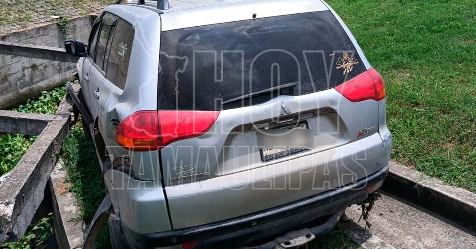 La unidad que por poco termina al fondo del canal a cielo abierto, es una camioneta Mitsubishi Montero color gris con placas de circulación del Estado de Veracruz, misma que en la intersección fue impactada en un costado por una Ford color gris.