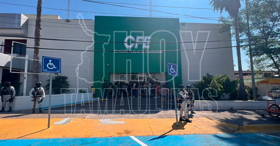 Reynosa, Tamaulipas. - Habitantes de la colonia Praderas de Élite se manifestaron en las instalaciones de la Comisión Federal de Electricidad (CFE) en Reynosa, para demandar una pronta solución a la falta de energía eléctrica por más de una semana.