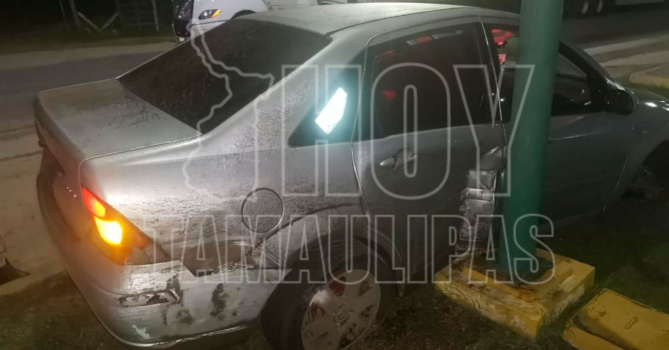Altamira, Tamaulipas. - El exceso de velocidad con que se desplazaba y la falta de pericia al conducir sobre pavimento mojado en Altamira, provocó que el conductor de un automóvil perdiera el control del volante y derrapara, derribando a su paso un transformador de la Comisión Federal de Electricidad (CFE) e impactándose contra un poste.