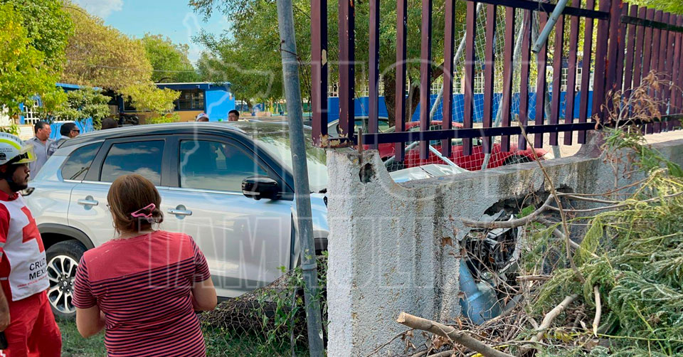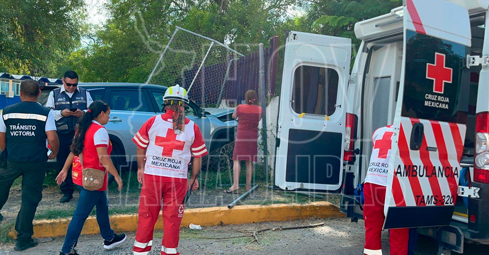 Ciudad Victoria, Tamaulipas. - Una mujer de la tercera edad resultó lesionada al chocar su camioneta contra la barda de una escuela, ubicada en la Calzada General Luis Caballero y calle 15 de Mayo en Ciudad Victoria.