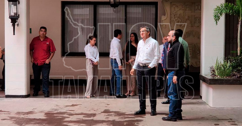 Se pudo apreciar como el gobernador supervisó tanto el interior como el exterior del edificio, en donde ya se empezó a colocar la decoración correspondiente al día del Grito de la Independencia de México.