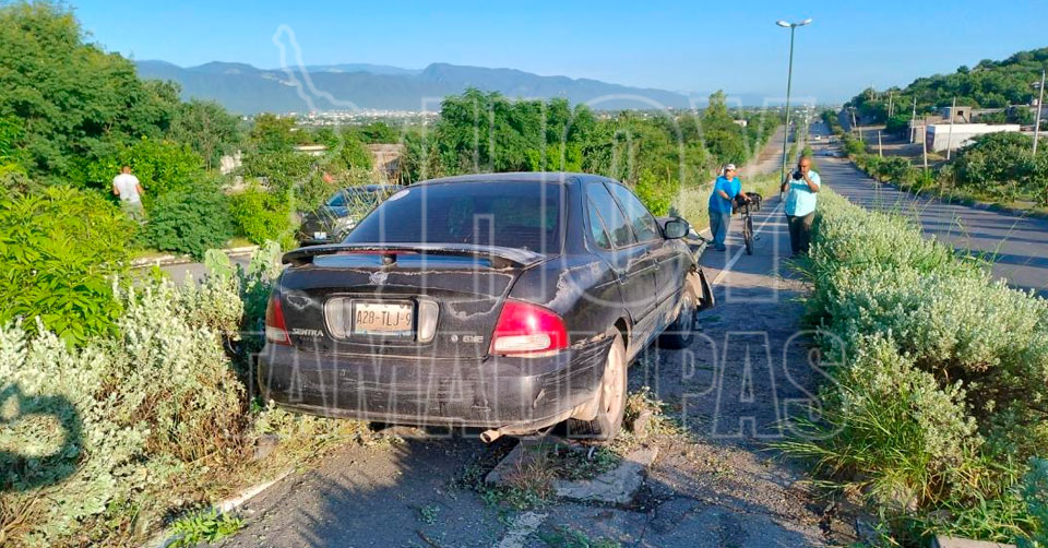 La mujer señaló que al tomar una curva y empezar a descender sobre la avenida salieron varios perritos, y para evitar chocarlos dio el volantazo y perdió el control de su auto Nissan Sentra.