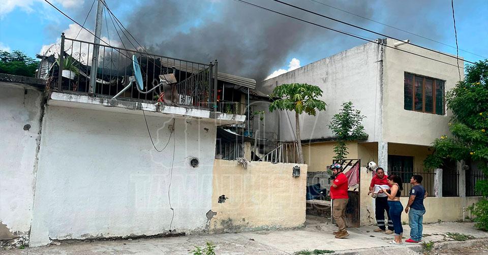 El siniestro se registró en la parte alta de una vivienda ubicada en la calle Doctores y Bachilleres de la colonia Bertha del Avellano.
