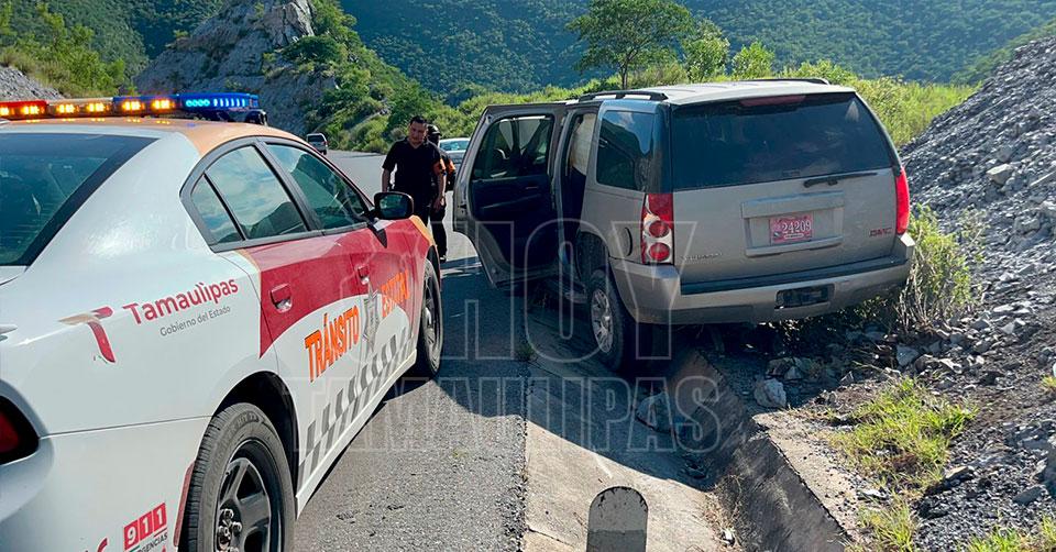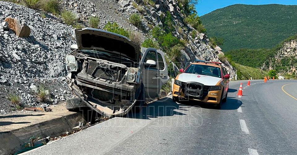 El conductor que se dirigía rumbo a Jaumave perdió el control en una curva debido al exceso de velocidad y tras salir de la carretera chocó con un señalamiento y luego con la cuneta.