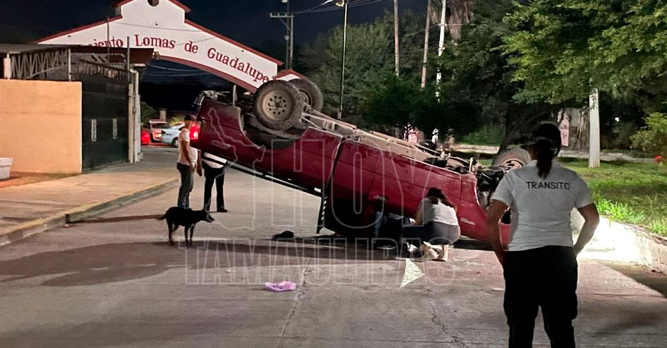 Ciudad Victoria, Tamaulipas. - Un conductor en presunto estado de ebriedad resultó ileso tras volcar su camioneta cuando estaba a punto de llegar a su casa, en el Fraccionamiento Lomas de Guadalupe en Ciudad Victoria.