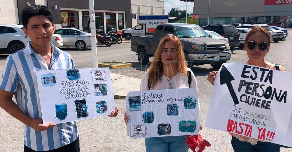 Matamoros, Tamaulipas. - Con la finalidad de frenar el maltrato animal en Matamoros, activistas marcharon este día por las principales avenidas de esta ciudad para exigir al gobierno municipal que se acaben los permisos y se retiren a los carretoneros que usan a los caballos para trasladar toneladas de basura al centro de transferencia.