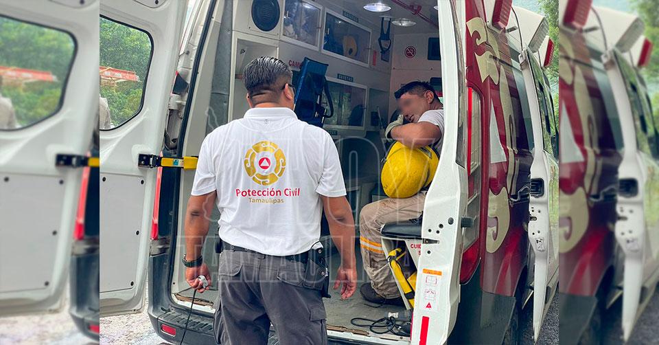 Ciudad Victoria, Tamaulipas. - Un empleado de la Comisión Federal de Electricidad (CFE) fue rescatado por elementos de Protección Civil Tamaulipas esta tarde, luego de que se sintió mal cuando andaba realizando trabajos de limpieza al fondo de un barranco.