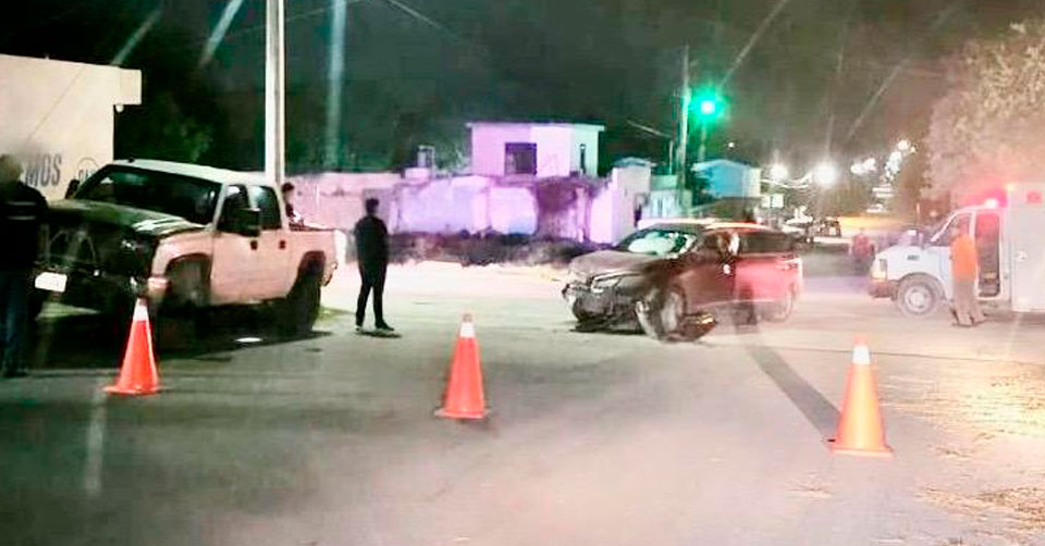 San Fernando, Tamaulipas.- Un accidente vial registrado en la calle Guerrero de San Fernando dejó como saldo tres personas lesionadas, entre ellas dos menores de edad. El percance ocurrió cuando el conductor de una camioneta Chevrolet Pickup color blanco, que circulaba a exceso de velocidad, omitió el alto obligatorio en el cruce con la calle Altamirano y colisionó contra otra camioneta.