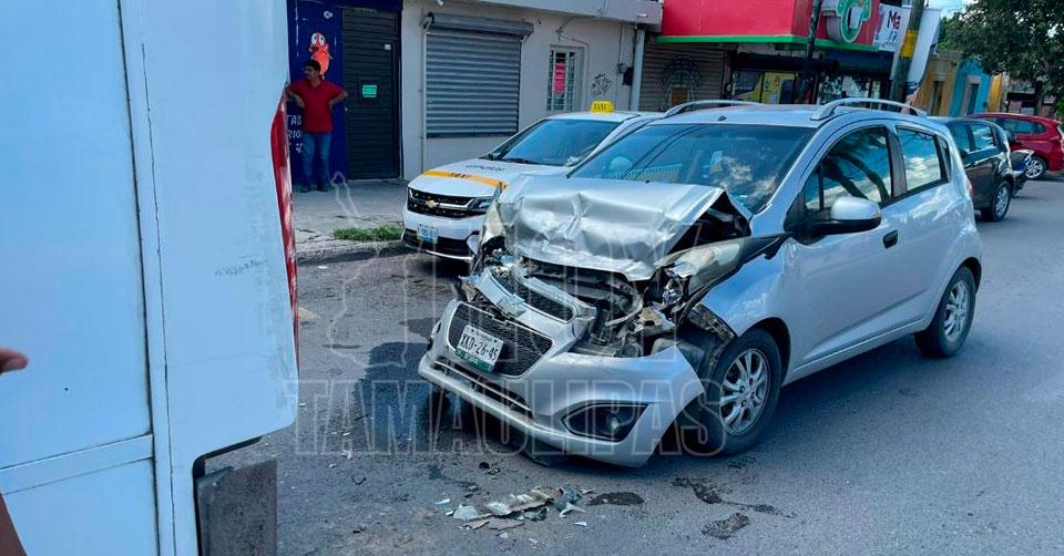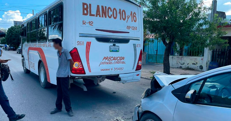 El accidente se registró en el 16 Coahuila y Nuevo León del primer cuadro de la ciudad, en donde se vieron involucrados un microbús de la ruta 13 y un Chevrolet Spark.