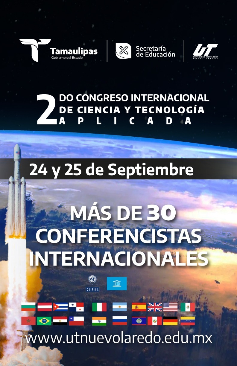Nuevo Laredo, Tamaulipas.- Con la participación de más de 20 conferencistas internacionales se inaugurará este martes 24 de septiembre el Segundo Congreso de Ciencia y Tecnología Aplicada que organiza la Universidad Tecnológica de Nuevo Laredo (UTNL), y el cual se mantendrá hasta el miércoles 25 de septiembre.