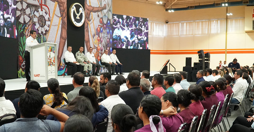 En el evento de apertura celebrado en el Gimnasio Multidisciplinario del Campus Victoria, ante cientos de estudiantes de las facultades y unidades académicas, así como docentes, funcionarios, personal directivo y administrativo de la UAT, el rector destacó que este encuentro es una valiosa oportunidad para seguirse preparando en los temas de la ciberseguridad y el uso responsable del manejo de datos e información.