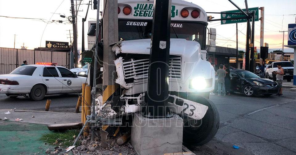 Reynosa, Tamaulipas. – Varios pasajeros resultaron lesionados esta noche, al registrarse el choque de una unidad de transporte público en las calles Praxedis Balboa y Río Mante de la colonia Longoria.