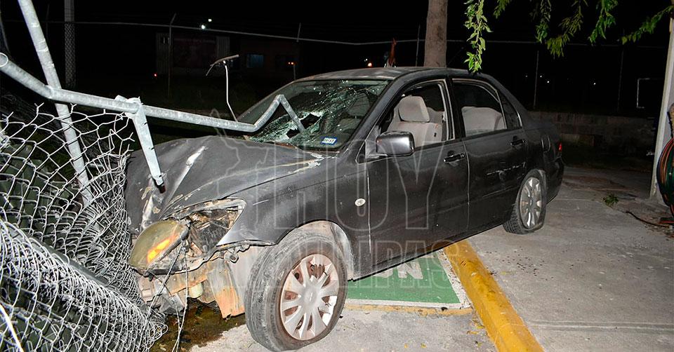 El automóvil se impactó contra una pequeña barda de cemento y la malla ciclónica del estacionamiento de una pizzería cercana.