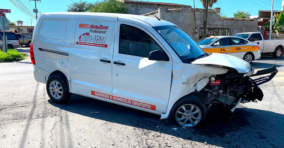 Nuevo Laredo, Tamaulipas. — Un aparatoso accidente entre un automóvil y una camioneta propiedad de una refaccionaria de cadena internacional, dejó cuantiosos daños materiales.