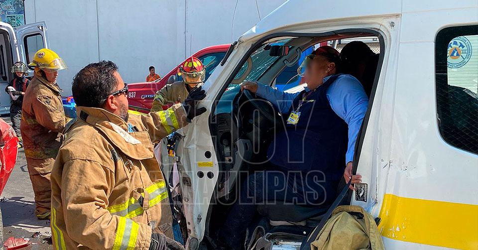 Nuevo Laredo, Tamaulipas. — Tras sufrir un mareo al volante, una mujer que conducía una camioneta de Coppel chocó contra otra estacionada en la colonia San Rafael de Nuevo Laredo. Además de ella, ocho trabajadores que viajaban en la unidad resultaron heridos.