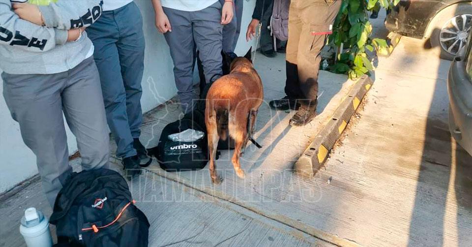 Ciudad Victoria, Tamaulipas. - Personal de la Guardia Estatal realizó de manera sorpresiva el “operativo mochila” al exterior del Instituto Tamaulipeco de Capacitación para el Empleo (ITACE) durante el turno matutino, en donde se contó con el apoyo de binomios caninos para la detección de estupefacientes; se detectaron armas blancas y sustancias en ocho estudiantes.