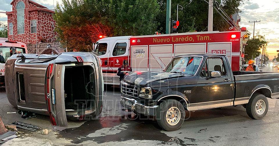 Nuevo Laredo, Tamaulipas. — Una mujer volcó en su camioneta al pasar un semáforo en rojo y ser impactada por el conductor de otra unidad en la colonia Guerrero, en Nuevo Laredo.