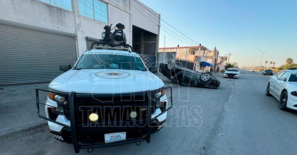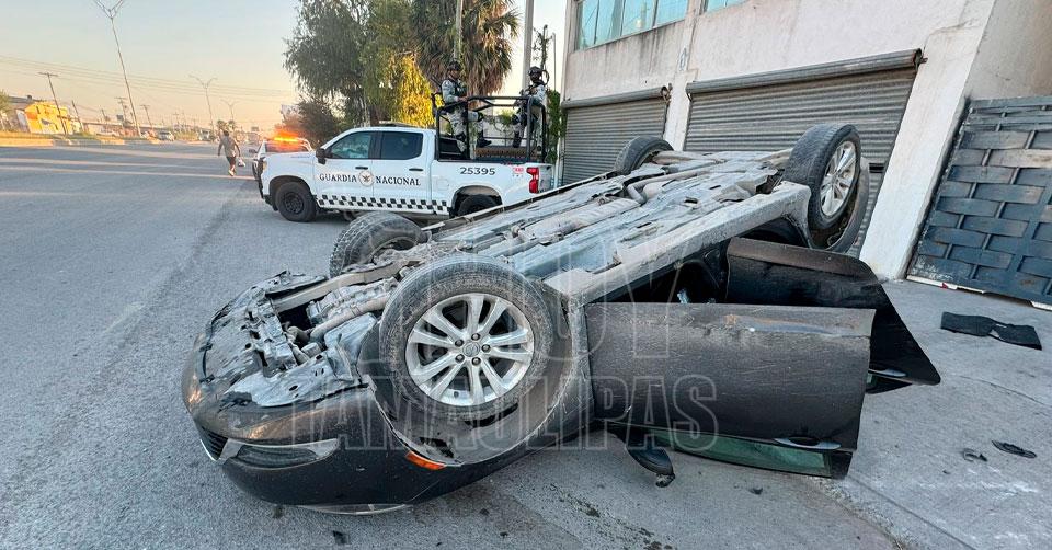 Abandonan carro tras volcadura en Matamoros