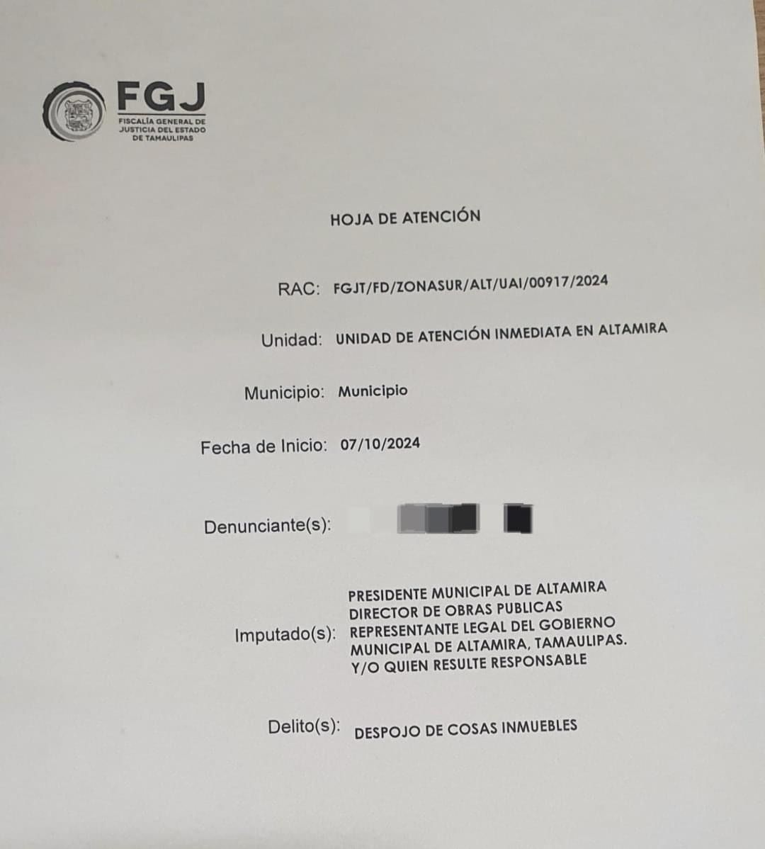 Altamira, Tamaulipas. - El presidente municipal de Altamira, Armando Martínez Manríquez, se encuentra metido en otra polémica ahora al ser denunciado por despojo ante la Fiscalía General de Justicia de Tamaulipas.