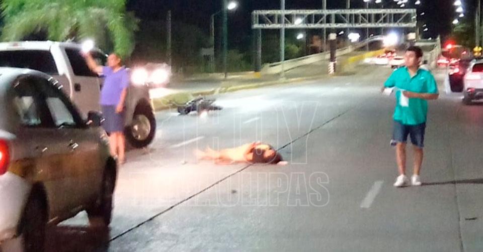 El accidente se registró la noche de este domingo sobre la Avenida Tamaulipas, rumbo al máximo paseo turístico del sur de Tamaulipas, poco antes de llegar al puente ubicado en la intersección con el Callejón de Barriles.