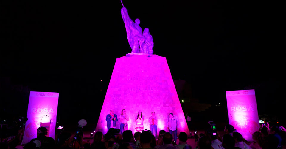 A las 8:00 PM, la presidenta municipal, Carmen Lilia Canturosas Villarreal, junto al diputado federal Carlos Canturosas Villarreal, síndicos, regidores, funcionarios y ciudadanos encendieron el Monumento a Fundadores en color rosa, como un símbolo de solidaridad y empatía con las mujeres que luchan contra esta enfermedad y como tributo a quienes ya no se encuentran con nosotros.