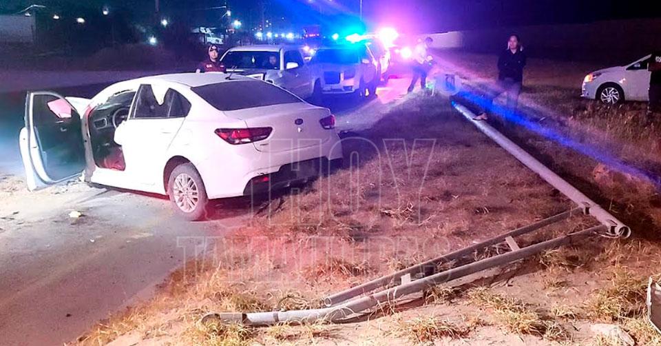 Nuevo Laredo, Tamaulipas.— Una mujer terminó lesionada tras perder el control de su vehículo y estrellarse contra un poste de alumbrado público en la Carretera Aeropuerto de Nuevo Laredo.