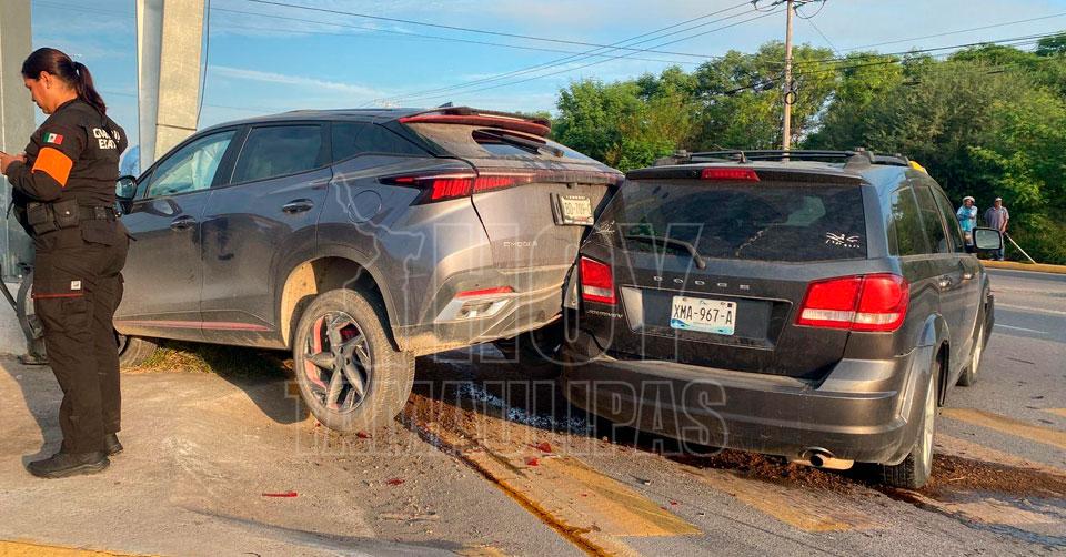 En la colisión se vieron involucradas una camioneta Dodge Journey con placas de circulación del Estado de Tamaulipas XMA-967-A, la cual era guiada en dirección de norte a sur por la carretera a Matamoros.