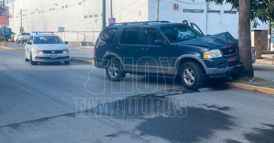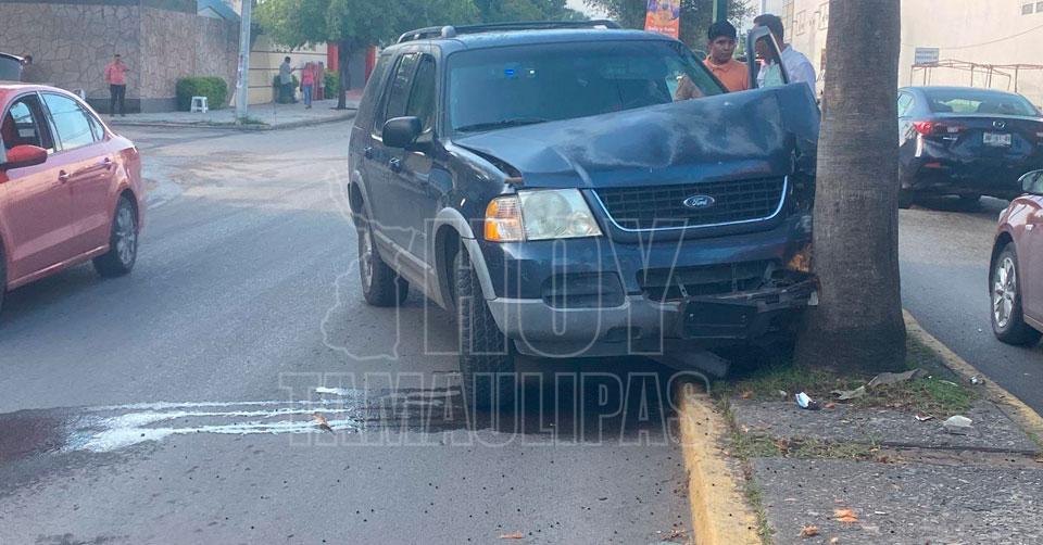 Ciudad Victoria, Tamaulipas. - Una conductora perdió el control de su camioneta debido al exceso de velocidad y se estrelló con una palmera plantada en el camellón central del 16 Oaxaca en Ciudad Victoria.