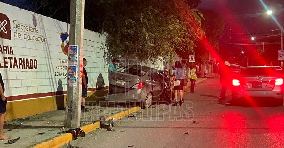 Los jóvenes viajaban en un automóvil Nissan Versa cuando el conductor, presuntamente en estado de ebriedad, perdió el control al volante y se trepó a la banqueta, hasta pasar en medio de un poste de concreto con el que chocó y entre la barda de la Primaria.