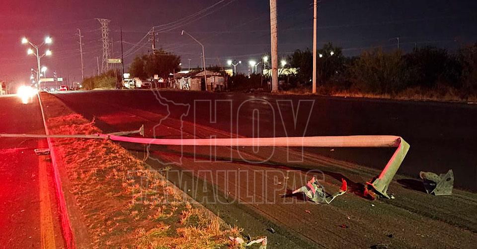 Choca auto, poste y luego vuelca en Nuevo Laredo